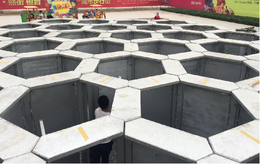蜂巢,自然界中最完善的構(gòu)造迷宮,人們耳熟聞詳?shù)囊环N智力游戲,就是將蜂巢和迷宮這兩種毫不相干的東西巧妙結(jié)合在一起。整個(gè)迷宮呈一個(gè)規(guī)則的六邊形,如果從高處俯瞰就是一個(gè)放大的蜂巢。內(nèi)部共有37個(gè)六邊形空間、132個(gè)扇門(mén),多條選擇線路??芍^史上最變態(tài)的大型迷宮道具,足以挑戰(zhàn)你的億萬(wàn)腦細(xì)胞!