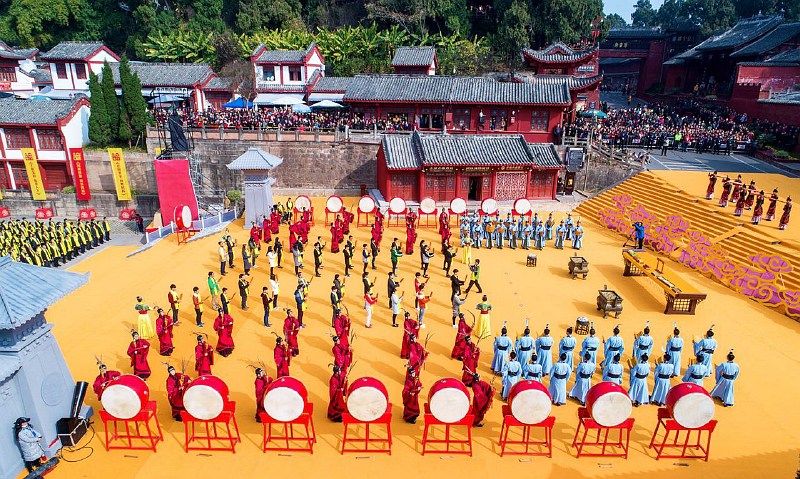 丁酉年海峽兩岸文昌祭祀大典28日在四川梓潼縣舉行,來自海峽兩岸及美國、馬來西亞、新加坡以及香港等地的嘉賓代表齊聚“天下文昌祖庭”——七曲山大廟,共同祭祀文昌帝君。